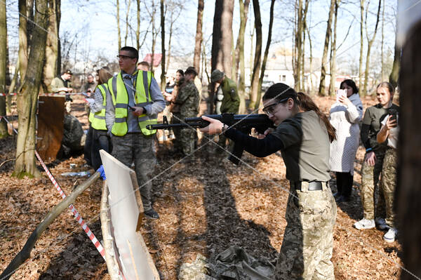 Keywords: Lviv,youth,child,childhood,education,military,uniform,camouflage,student,Roman Shukhevych,Bilohorshcha,Ukrainian Insurgent Army,UPA,patriotism,patriotic,forest,shooting,rifle,standing position,weapon,girl