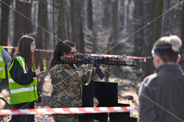 Keywords: Lviv,youth,child,childhood,education,military,uniform,camouflage,student,Roman Shukhevych,Bilohorshcha,Ukrainian Insurgent Army,UPA,patriotism,patriotic,forest,shooting,rifle,standing position,weapon,girl