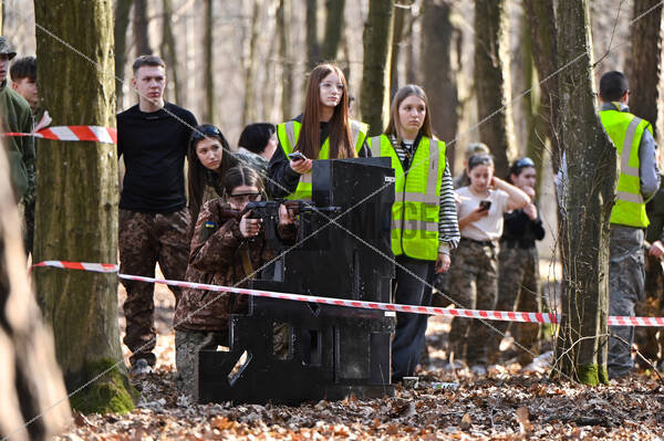 Keywords: Lviv,youth,child,childhood,education,military,uniform,camouflage,student,Roman Shukhevych,Bilohorshcha,Ukrainian Insurgent Army,UPA,patriotism,patriotic,forest,shooting,rifle,kneeling position,weapon,girl