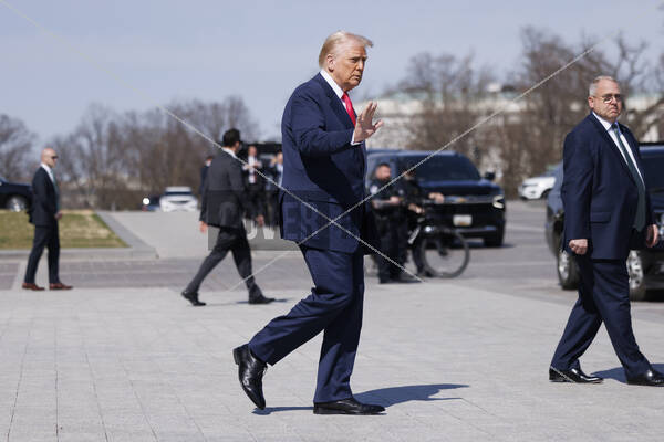 United States President Donald J Trump departs a reception with Micheál Martin, Taoiseach of Ireland, outside the Capitol Building in Washington