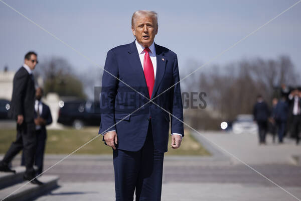 United States President Donald J Trump departs a reception with Micheál Martin, Taoiseach of Ireland, outside the Capitol Building in Washington