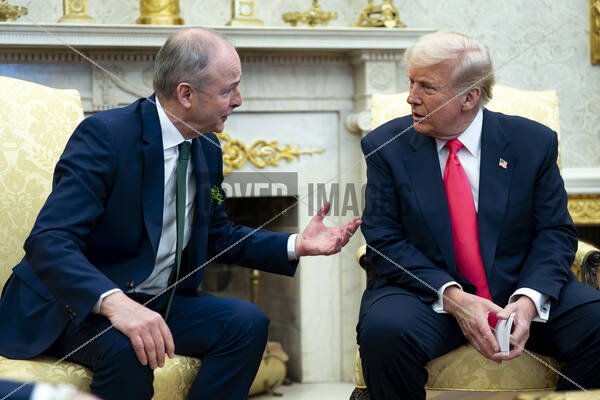 United States President Donald Trump meets with Irish Taoiseach Micheal Martin in the Oval Office of the White House in Washington, DC