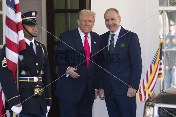 United States President Donald J Trump welcomes the Taoiseach of Ireland, Michel Martin to the White House in Washington, DC