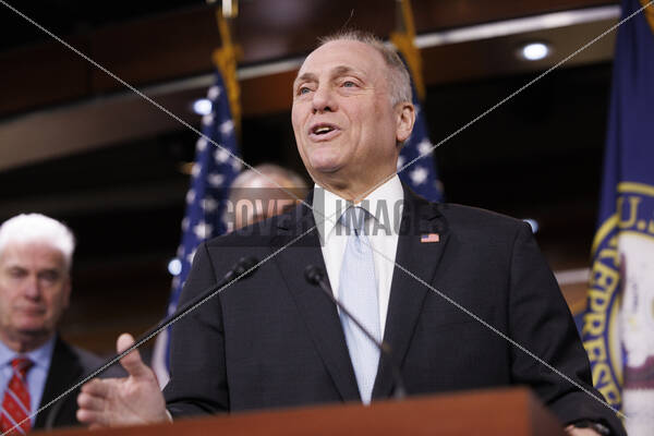 United States House Majority Leader Steve Scalise (Republican of Louisiana) gives remarks at a press conference with House Republican Leadership in the Capitol Building