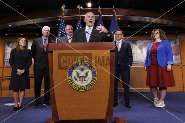 United States House Majority Leader Steve Scalise (Republican of Louisiana) gives remarks at a press conference with House Republican Leadership in the Capitol Building