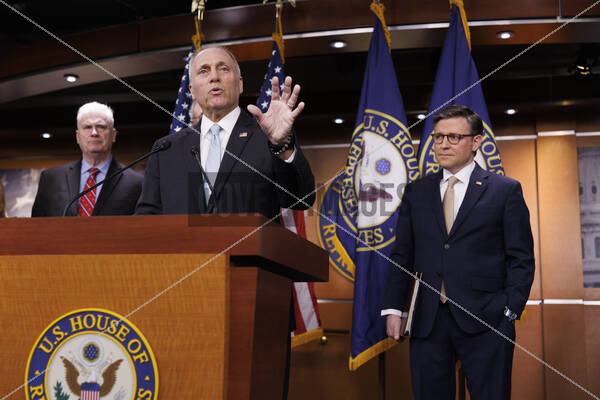United States House Majority Leader Steve Scalise (Republican of Louisiana) gives remarks at a press conference with House Republican Leadership in the Capitol Building