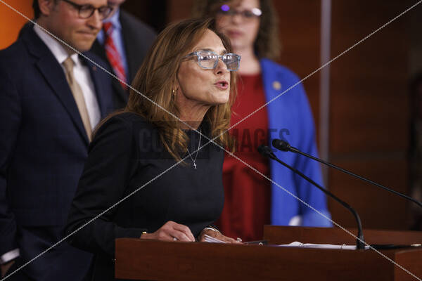 United States Representative Lisa C. McClain (Republican of Michigan) gives remarks at a press conference with House Republican Leadership in the Capitol Building