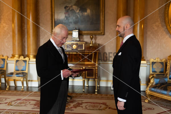 PersonInImage: His Excellency Mr. Atis Lots, Ambassador from the Republic of Latvia, presents his credentials to King Charles III