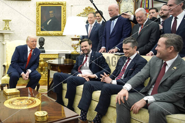 PersonInImage: President Donald Trump, Mark Rutte, Lee Zeldin, Matthew Whitaker, Keith Kellogg, Doug Burgum, Vice President JD Vance, Pete Hegseth, Michael Waltz