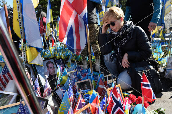 Keywords: Kyiv,Russian-Ukrainian war,war in Ukraine,war,Maidan Nezalezhnosti,commemoration,memory,ceremony,volunteers,military,people's memorial,flag,USA,US
