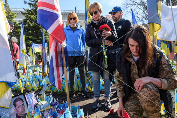 Keywords: Kyiv,Russian-Ukrainian war,war in Ukraine,war,Maidan Nezalezhnosti,commemoration,memory,ceremony,volunteers,military,people's memorial,flag,USA,US