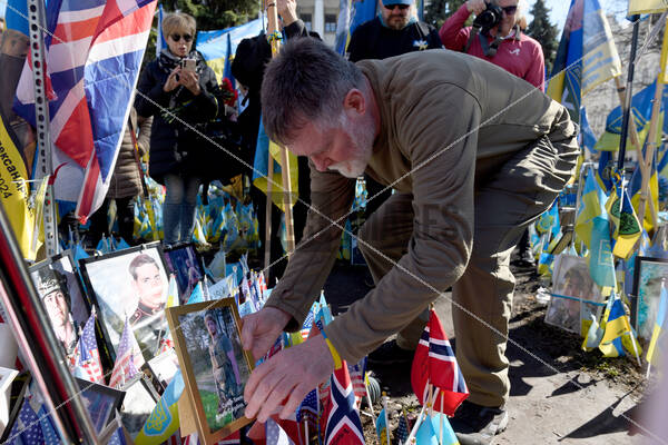 Keywords: Kyiv,Russian-Ukrainian war,war in Ukraine,war,Maidan Nezalezhnosti,commemoration,memory,ceremony,volunteers,military,people's memorial,flag,USA,US