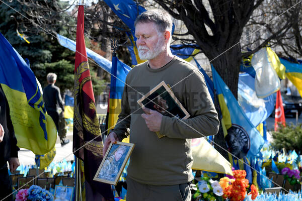 Keywords: Kyiv,Russian-Ukrainian war,war in Ukraine,war,Maidan Nezalezhnosti,commemoration,memory,ceremony,volunteers,military,people's memorial,flag,USA,US