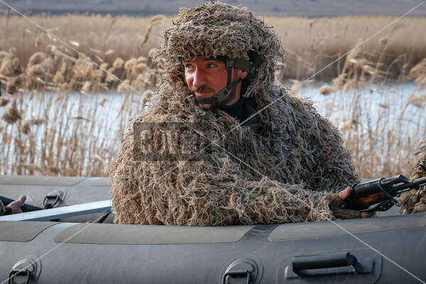 Keywords: Ukrainian Navy,40th Separate Coastal Defense Brigade,brigade,coast guard,marines,landing,training,exercises,drill,military,Kherson region,disguise,camouflage,kikimora,cloak,boat