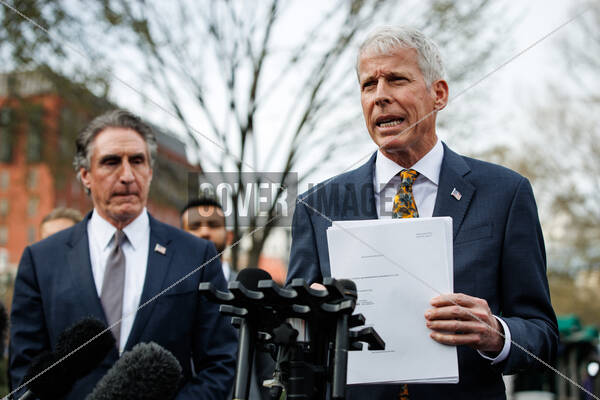 United States Secretary of Energy Chris Wright (R) speaks to reporters alongside US Secretary of the Interior and Chair, National Energy Council and White House Energy Czar Doug Burgum (L) in front of the West Wing at the White House in Washington, D.C. on March 19, 2025. Burgum and Wright met with President Donald Trump and executives from the oil and gas industries at the White House today.