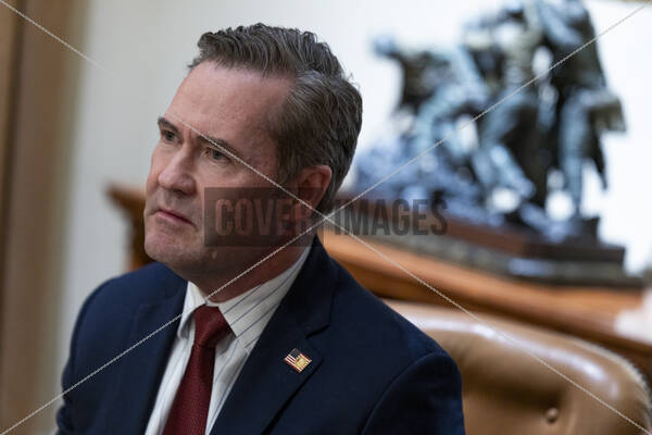 National Security Advisor Michael Waltz responds to a question from the news media during a meeting with US President Donald J. Trump and Ambassador nominees in the Cabinet Room of the White House in Washington, DC, USA 25 March 2025. The president took questions that largely concentrated on the controversial Signal text string between the President’s national security staff regarding US attacks in Yemen.