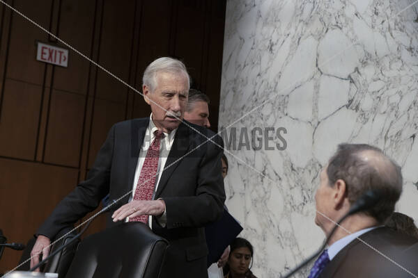 United States Senator Angus King, Jr. (Independent of Maine) speaks to United States Senator Ron Wyden (Democrat of Oregon) before the US Senate Select Committee on Intelligence hearings to examine worldwide threats in the Hart Senate office building in Washington, DC