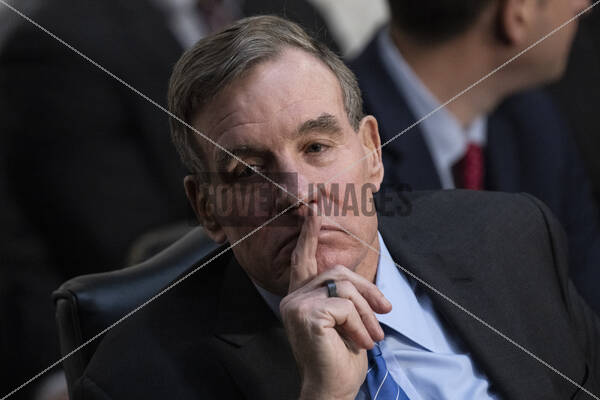 United States Senator Mark Warner (Democrat of Virginia), Ranking Member, US Senate Select Committee on Intelligence, listens to witness testimony during the hearing to examine worldwide threats in the Hart Senate Office Building in Washington, DC