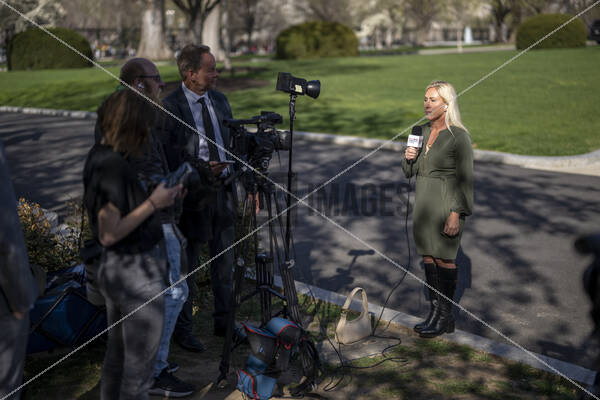 United States Representative Marjorie Taylor Greene speaks to ‘Real America’s Voice’ on the North Lawn White House on March 26, 2025