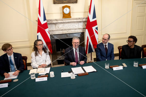 PersonInImage: Prime Minister Sir Keir Starmer meets with writer Jack Thorne (second from right) and producer Jo Johnson (right) of the television show Adolescence, along with Sarah Simpkin (second from left) from the Children's Society and young people