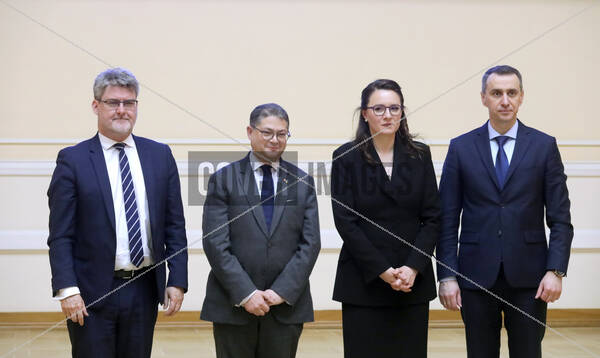 PersonInImage: Ambassador Extraordinary and Plenipotentiary of France to Ukraine Gael Vessier, Special Envoy of the President of France for Economic Assistance and Reconstruction of Ukraine Pierre Elbrun, First Vice Prime Minister and Minister of Economy of Ukraine Yuliia Svyrydenko, Minister of Health of Ukraine Viktor Liashko (L to R)