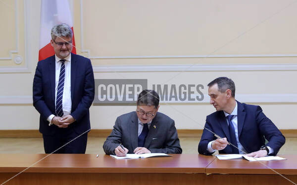 Ambassador Extraordinary and Plenipotentiary of France to Ukraine Gael Vessier, Special Envoy of the President of France for Economic Assistance and Reconstruction of Ukraine Pierre Elbrun and Minister of Health of Ukraine Viktor Liashko (L to R) are pictured during the signing of agreements to be implemented as part of the French government’s assistance in the reconstruction of Ukraine