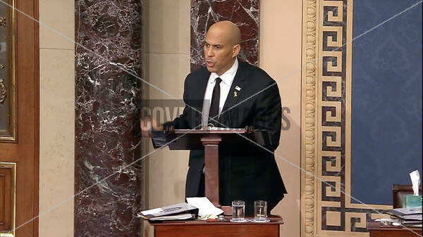 Headline: US Senator Cory Booker during a marathon address in the US Senate