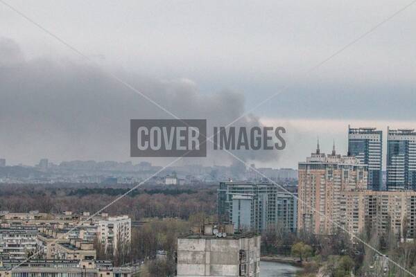 Keywords: Ukraine conflict,Russian invasion,Ukraine war,war,conflict,Russia-Ukraine war,aftermath,emergency,ballistic missile,missile attack,Kyiv,fire,smoke,cloudy,apartment block