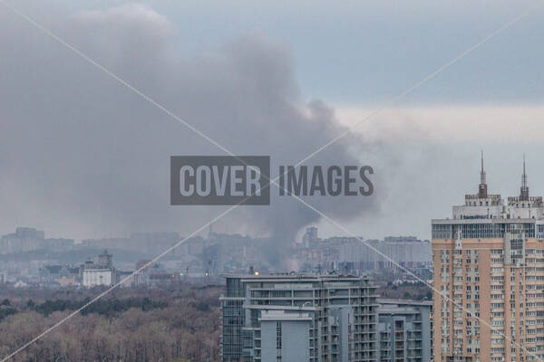 Keywords: Ukraine conflict,Russian invasion,Ukraine war,war,conflict,Russia-Ukraine war,aftermath,emergency,ballistic missile,missile attack,Kyiv,fire,smoke,cloudy,apartment block