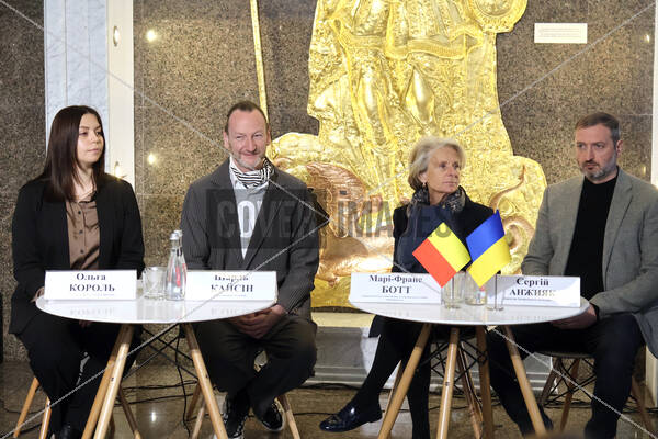 PersonInImage: Olha Korol, the project manager at the Favbet Foundation, Charles Kaisin, a Belgian designer, Marie-France Botte, the head of international relations at the mayor’s office of Brussels responsible for economic liaisons and patronage, and Serhii Anzhyiak, the director of the Culture Department at the Kyiv City State Administration, (L to R)