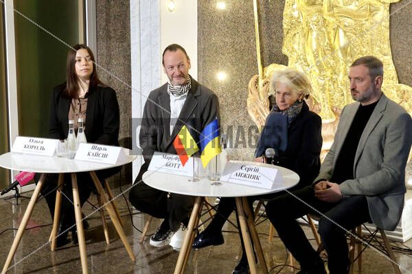 PersonInImage: Olha Korol, the project manager at the Favbet Foundation, Charles Kaisin, a Belgian designer, Marie-France Botte, the head of international relations at the mayor’s office of Brussels responsible for economic liaisons and patronage, and Serhii Anzhyiak, the director of the Culture Department at the Kyiv City State Administration, (L to R)