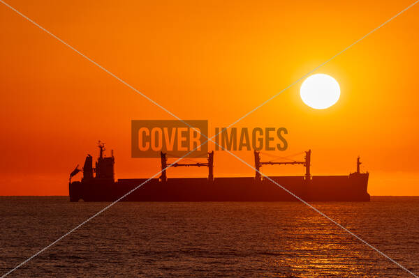 Keywords: sunrise, Bulk Carrier, Issara Naree, Port of Tyne, ship, maritime, Cargo vessel, shipping industry, ocean transport, Port sunrise, Ship at dawn, Seascape, Nautical, Time-lapse sunrise, Harbor view, weather, UK sunrise, dawn