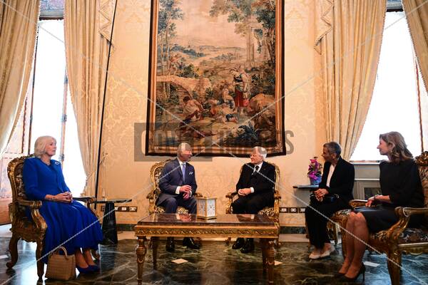 PersonInImage: King Charles III and Queen Camilla meeting by the President of the Italian Republic, Sergio Mattarella and the President's daughter, Laura Mattarella (right)