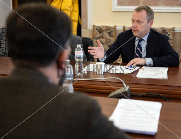 OSCE High Commissioner on National Minorities Christophe Kamp is seen during the meeting with Deputy Minister of Culture and Strategic Communications of Ukraine for European Integration Andrii Nadzhos