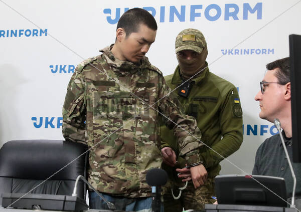 Chinese national Wang Guangjun, who was captured by Ukraine’s Defence Forces while fighting for Russian troops in the Donetsk region in eastern Ukraine in early April, attends a news conference