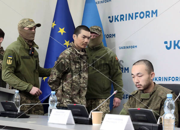 Headline: Ukraine press conference with two captured Chinese men who were caught fighting for Russia