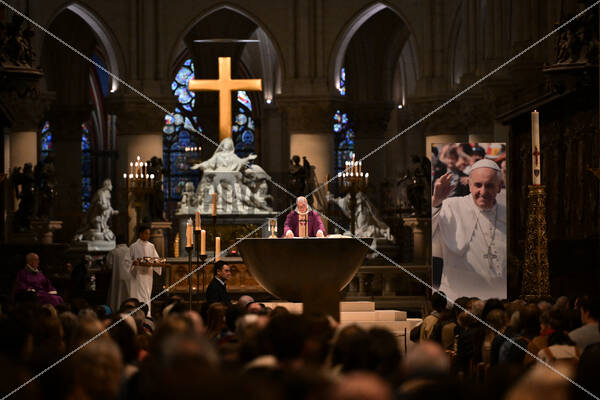 Headline: Mass At Notre Dame Cathedral Following The Death of Pope Francis