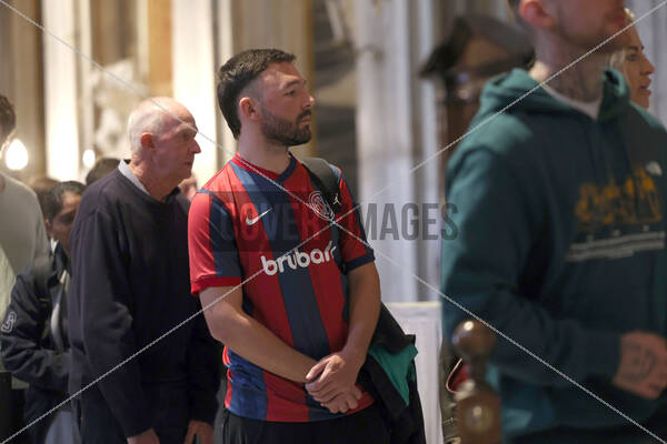 A fan of the Argentine team San Lorenzo. Pilgrims and faithful pay homage at the tomb of Pope Francis Bergoglio at the Basilica of Santa Maria Maggiore where he is buried