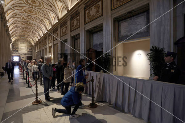 Pilgrims and faithful pay homage to the tomb of Pope Francis Bergoglio at the Basilica of Santa Maria Maggiore where he is buried.