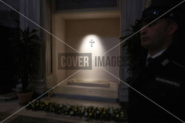 The Marble Tomb of the Pontiff. Pilgrims and faithful pay homage to the tomb of Pope Francis Bergoglio at the Basilica of Santa Maria Maggiore where he is buried.