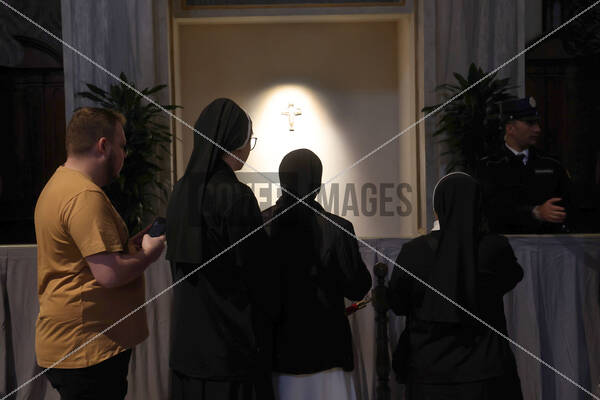Pilgrims and faithful pay homage to the tomb of Pope Francis Bergoglio at the Basilica of Santa Maria Maggiore where he is buried.
