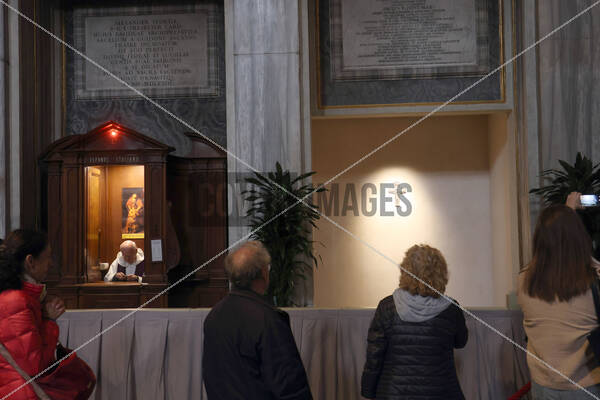 Pilgrims and faithful pay homage to the tomb of Pope Francis Bergoglio at the Basilica of Santa Maria Maggiore where he is buried.