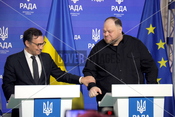 NATO Parliamentary Assembly Marcos Perestrello (L) and Speaker of the Verkhovna Rada of Ukraine Ruslan Stefanchuk hold a joint briefing in Kyiv, Ukraine