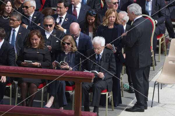 PersonInImage: Rome, Rite of Enthronement of Pope Leo XIV - installation ceremony and beginning of pontificate, In the photo: President Mattarella with his daughter Laura, Prime Minister Giorgia Meloni