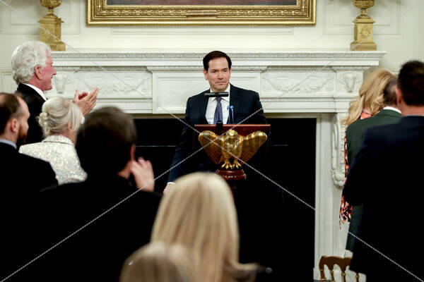 United States Secretary of State Marco Rubio, during a Kennedy Center Board dinner with US President Donald Trump, not pictured, in the State Dining Room of the White House in Washington, DC, US, on Monday, May 19, 2025. The Kennedy Center United Arts Workers said in a statement last week that they had filed a petition with the National Labor Relations Board to represent the institution’s staff to push back against Trump’s control of the organization.