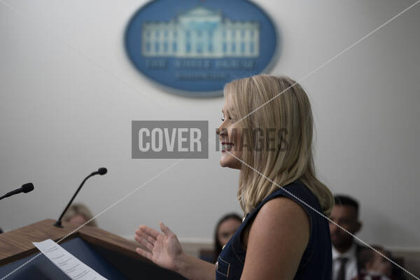 White House Press Secretary Karoline Leavitt conducts a press briefing for a Take Our Sons and Daughters to Work Day event in the James S Brady Press Briefing Room of the White House in Washington, DC