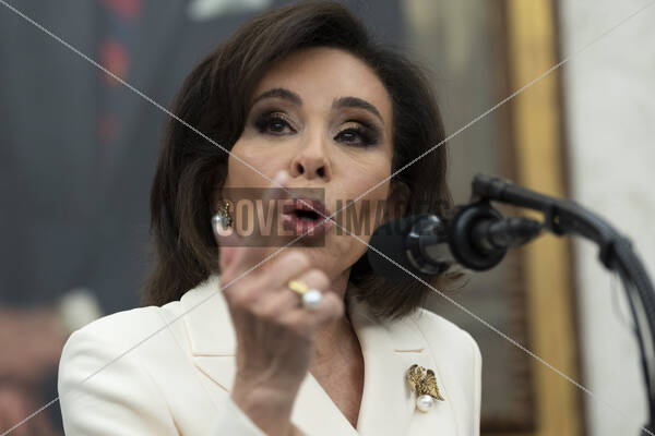 United States President Donald J Trump participates in a swearing-in ceremony for Fox News host Jeanine Pirro as interim US Attorney for the District of Columbia, in the Oval Office of the White House in Washington, DC, US