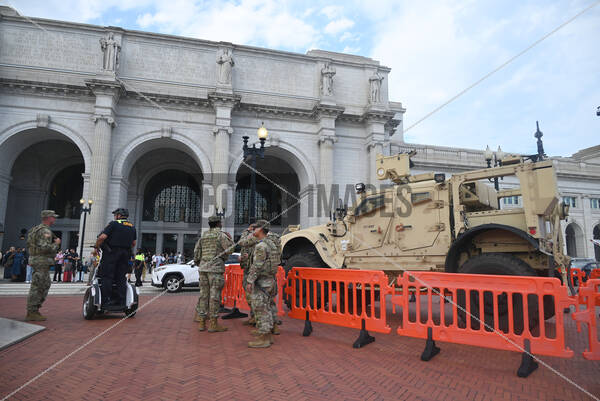 Members of the National Guard patrol in and around Union Station, which is a major transportation hub several blocks from the United States Capitol in Washington, DC, USA, on August 15, 2025. The patrols by the National Guard are part of US President Donald J Trump’s controversial crime reduction plan for the District of Columbia.