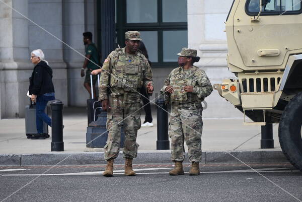 Members of the National Guard patrol in and around Union Station, which is a major transportation hub several blocks from the United States Capitol in Washington, DC, USA, on August 15, 2025. The patrols by the National Guard are part of US President Donald J Trump’s controversial crime reduction plan for the District of Columbia.