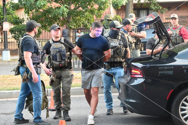 Drivers get pulled over and arrested at traffic stops in Washington DC in Washington, DC, USA, on August 15, 2025. The patrols by the National Guard and other police jurisdictions are part of US President Donald J Trump’s controversial crime reduction plan for the District of Columbia.